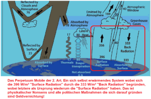 Denn in beiden Fällen – mit Gegenstrahlung (THGs) und ohne Gegenstrahlung (keine THGs, keine Luft) – erhöht sich jeweils die Entropie. Die Atmosphäre erfordert damit so oder so kein perpetuum mobile.