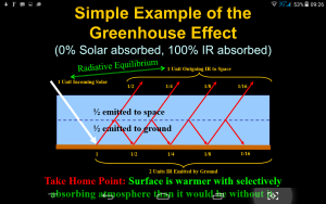 Herr Prof. Puschner, die UAH-Grafik zeigt das Gegenstrahlungsprinzip für ein Strahlungsmodell bei MITTLERER solarer Einstrahlung (240 W/m²) sowie 50% Gegenstrahlung woraus sich die erhöhte Bodentemperatur ergibt, welche ja relativ gut gespeichert wird. Ihr Nacht-Argument sowie Ihre Relaxationszeit sind da völlig verfehlt. Die abnehmende Hin- und Herstrahlung addiert sich gemäß einer geometrischen Reihe zu einem messbaren Ist-Wert.