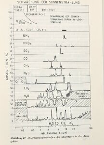 Die Grafik von Herrn Schulz stammt aus Wikipedia, Treibhauseffekt, Absorbtionsdiagramme und ist entsprechend Lücken und fehlerhaft. Allerdings zeigt sie schon den überbordenden Einfluss von Wasser in diesem Absorptions-/Emissionsgeschehen und man man sie verwenden, ohne gelöscht zu werden.