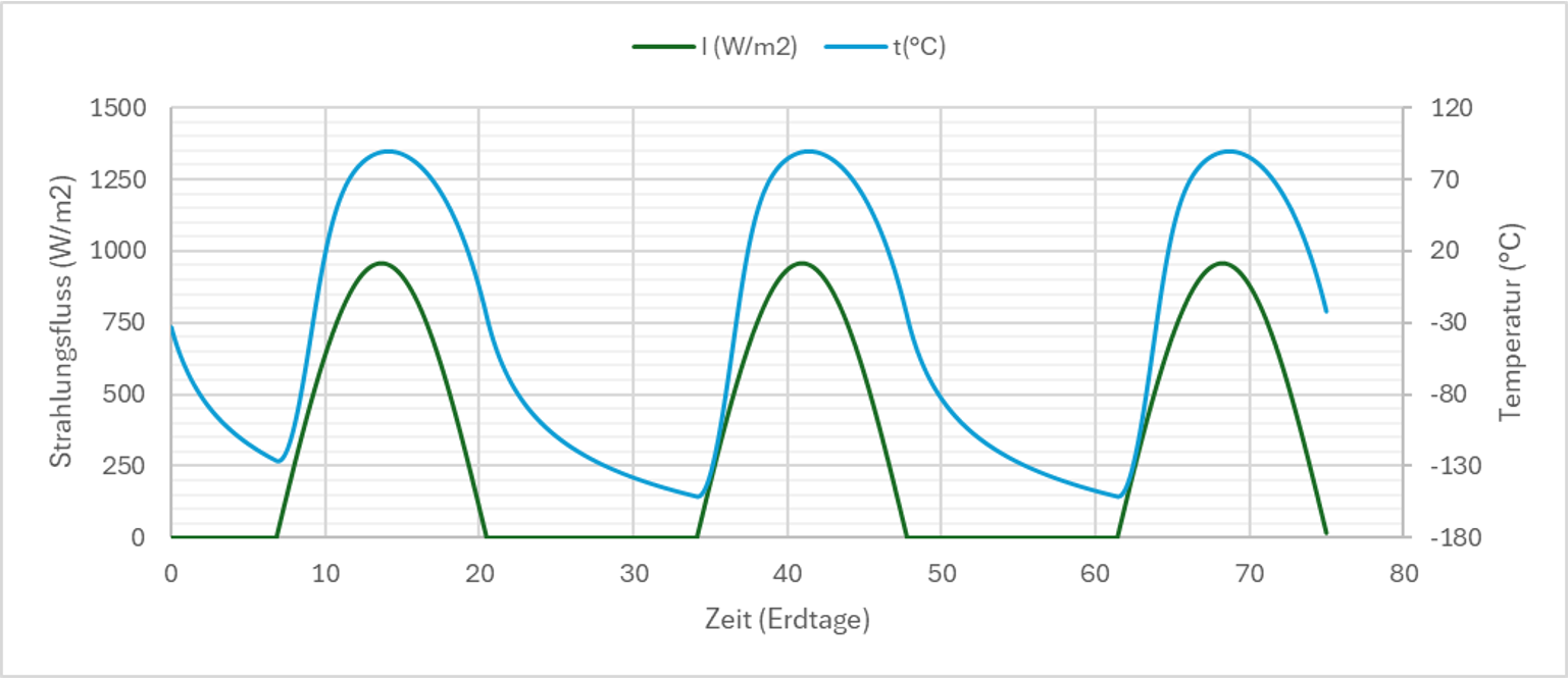 Ohne Sonneneinstrahlung würde die Erde langsam aber unaufhaltsam bis auf Weltraumkälte abkühlen, der Erdboden am Ort verliert pro Zeiteinheit dt die Wärmemenge F×dt Joule pro m2 ins All.