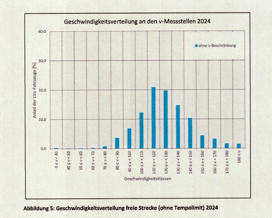 -die BASt-Messungen haben ergeben, dass die meisten Autobahnfahrer zwischen 110 und 140 km/h fahren, auch wenn es kein Tempolimit gibt