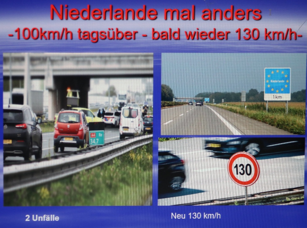 Abbildung In den Niederlanden gab es zeitlich beschränkte Geschwindigkeitsbeschränkungen. Ab Mitte April 2025 darf wieder 130 km/h auf den meisten Autobahnen gefahren werden.
