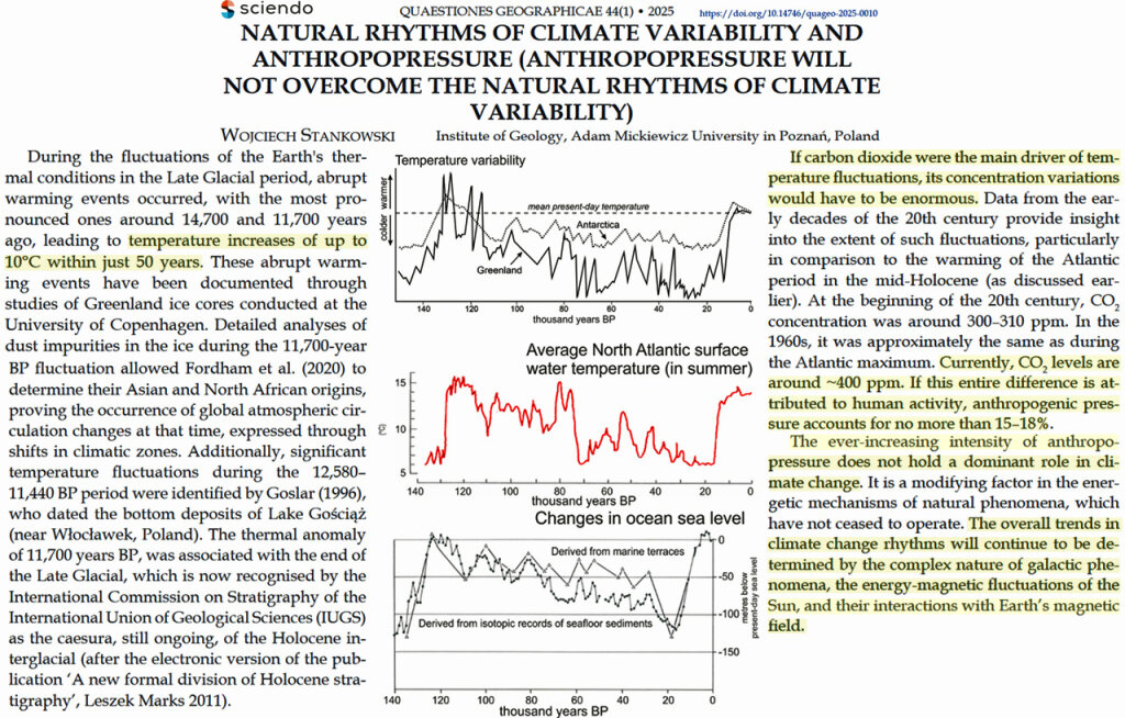 In einer neuen Studie hat der Geologieprofessor Dr. Wojciech Stankowski einige der Gründe zusammengefasst, warum die vorherrschende Meinung nicht durch Beweise gestützt werden kann, wonach der Mensch den Klimawandel durch die Verbrennung von mehr oder weniger fossilen Brennstoffen herbeiführen könne.