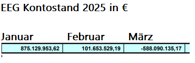 Und schon geht sie los die „EEG Rally 2025“, gel Peter… ich freue mich schon auf die April-Zahlen, die veranschlagten 17 Mrd € für 2025 werden wir dank Sonne wohl toppen. Der blöde Deutsche Steuer-Michel hat es ja…