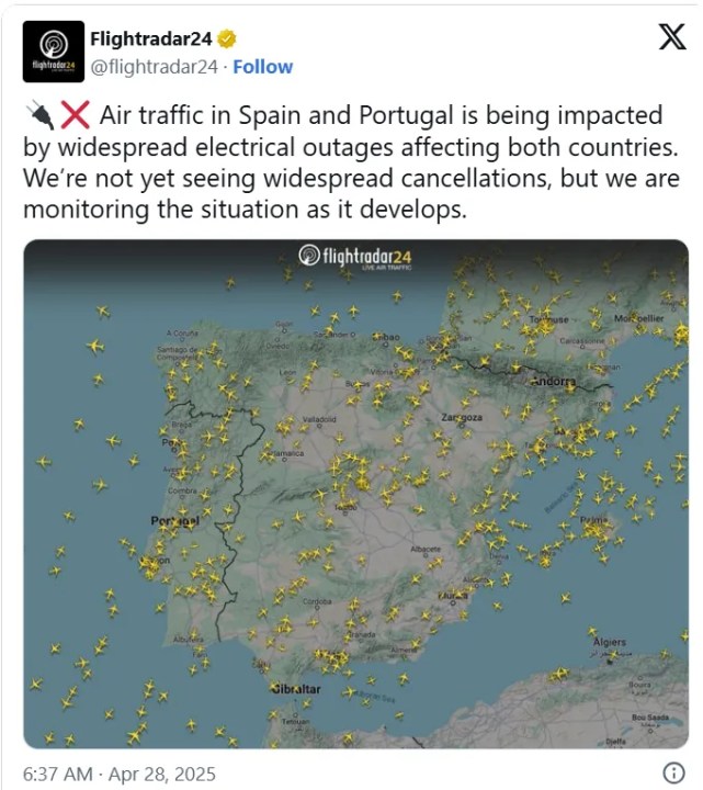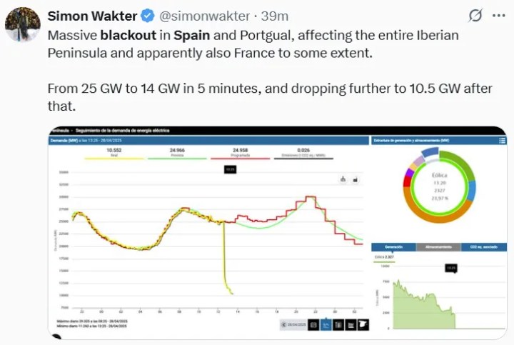 1 Tag vor den Stromausfällen: pic.twitter.com/ecHG5z48u7 – Restitutor (@Restitutor_) 28. April 2025