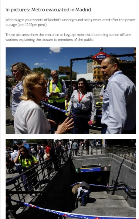 Teile der Madrider U-Bahn wurden evakuiert und die Ampeln in der Stadt funktionieren nicht, wie lokale Medien berichteten.