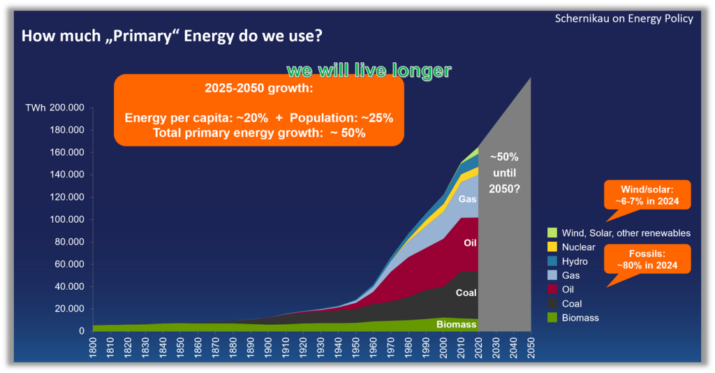Die folgende Tabelle fasst einige der wichtigsten Statistiken über den heutigen Energieverbrauch zusammen. Unglaublich, dass immer noch 60 % der Biomasse zum Heizen und 15 % zum Kochen in den Küchen der Welt verwendet werden. Quellen: [10, 11, 12, 13, 14, 15, 16, 17, 18]