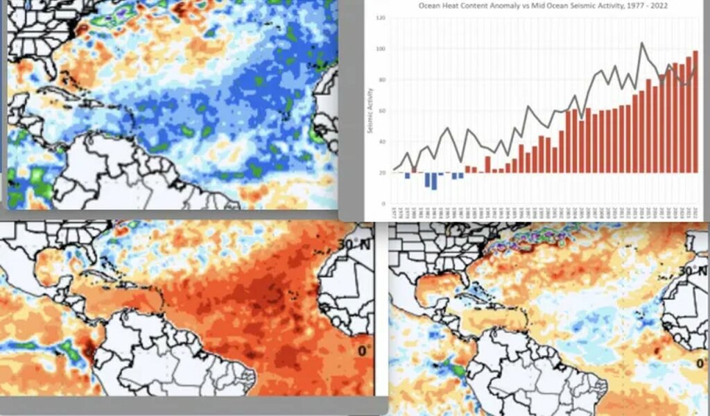 Bastardi und Viterito machen dafür nicht die vom Menschen verursachten CO₂-Emissionen verantwortlich und sind anderer Meinung. Sie konzentrieren sich auf seismische Aktivitäten in der Mitte des Ozeans – Erdbeben und vulkanische Aktivitäten entlang von Unterwasserkämmen – die ihrer Meinung nach seit dem späten 20. Jahrhundert zugenommen und große Wärmemengen in den Ozean freigesetzt hat. Diese Wärme staut sich in großen warmen Becken wie dem Indopazifik und dem Westatlantik, die ihrerseits die globalen Meeresströmungen speisen. Die Theorie ist einfach: Mehr seismische Aktivität bedeutet mehr Wärme im Meer. Weniger Aktivität, weniger Wärme.