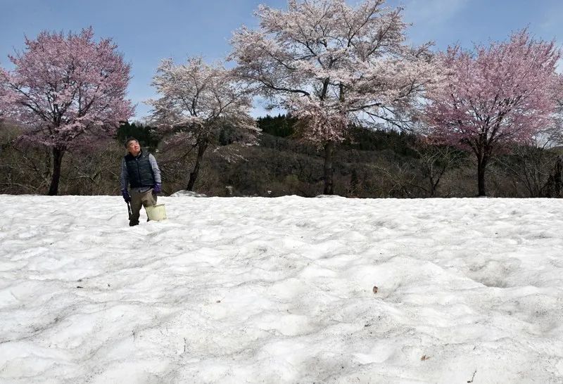 Am 1. Mai blühten fünfzehn Kirschbäume auf einem Park-Golfplatz in der Nähe der heißen Quelle Hijiori Onsen und zogen viele Besucher an.
