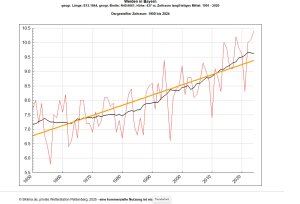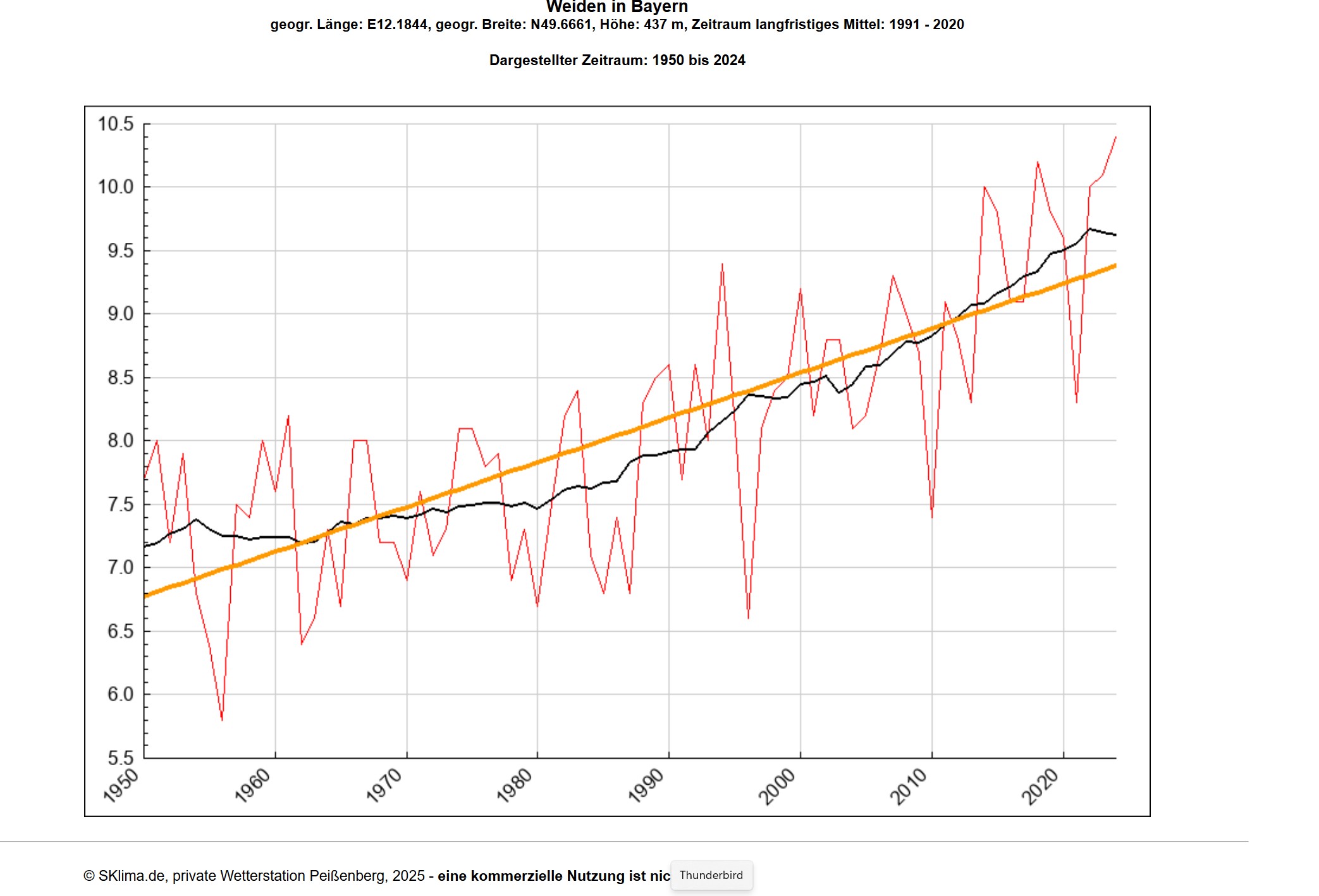 Hier ist Weiden (jährliche mittlere Temperatur 1950-2024)