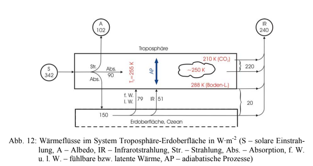 Herr Pesch, es ist nicht zu fassen: In Ihrer Abb.12 strahlt der Boden bei 288 K nur 20 W/m² ab!! Schon mal was von S-B gehört? Die Temperatur dazu müsste -136 Grad sein!! Und die Atmosphäre strahlt NICHT zum Boden!! Der Mann hat doch von Physik eine Ahnung!!