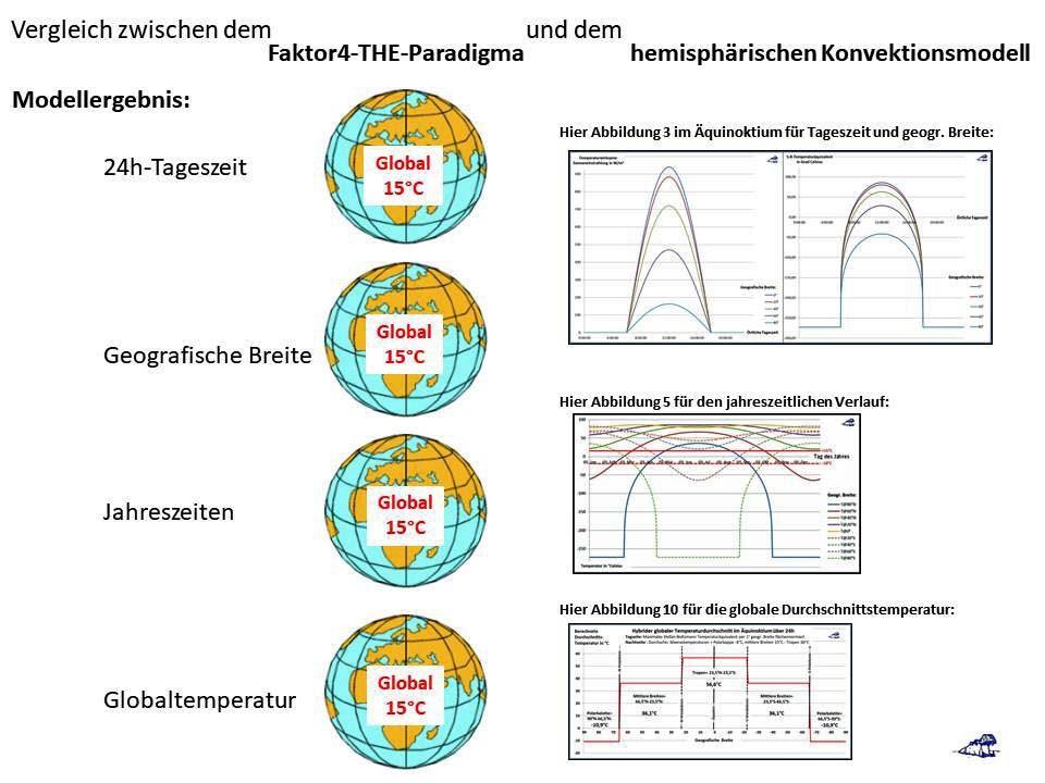Wie G&T (2009) bereits nachgewiesen hatten, kann das Faktor4-THE-Paradigma die Temperaturgenese auf unserer Erde aus sich heraus gar nicht erklären. Vielmehr müsste der sogenannte „natürliche atmosphärische Treibhauseffekt“ von vorgeblich eindimensionalen 33 Kelvin nach der Integrallösung von G&T sogar 144 K betragen. Hier also trennen sich die Wege des hemisphärischen Konvektionsmodells und des Faktor4-THE-Paradigmas endgültig – allein das hemisphärische Konvektionsmodell hat vor der Realität der terrestrischen Temperaturgenese Bestand.