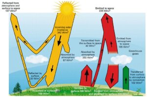Man kann auch nicht diese spezifischen Leistungswerte pro m² ohne Berücksichtigung der Wirkdauer der jeweiligen Prozesse gegeneinander aufrechnen, sondern müsste eine Bilanz der ein- und ausgehenden Energiemengen über einen ausreichend langen Zeitraum (beim Klima mindestens 30 Jahre) aufstellen. Nur daraus könnte sich ein Trend für den Energieinhalt des Erdsystems (Atmosphäre, Boden, Ozean) im annähernden Gleichgewicht ergeben.
