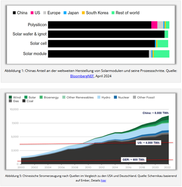 In China macht PV auch nur einen kleinen Teil der Stromproduktion aus, wobei man dort, anders al im Öko-bekloppten Deutschland, erst gar nicht die Absicht hat damit irgendetwas zu substituieren, man nimmt den PV und WKA Strom „on top“ zu den klassischen Kraftwerken…