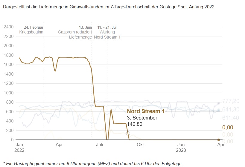 Die Aussage des russischen Gaslieferanten Gazprom am 03.09.2022 kein Gas mehr zu liefern, bezog sich auf NS1 und NS2 und ab dem 04.09.2022 haben die Russen den Gashahn komplett zugedreht.