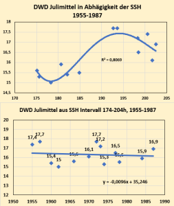 1. Kein Zusammenhang zwischen SSH und Tagesmitteltemperaturen vor 1988 (vielleicht versuchen Sie es mal mit Tmax!)