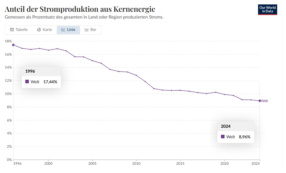 Die Zukunft der Kernenergie ist grundsätzlich im Sinkflug und das bereits seit ca. 30 Jahren.