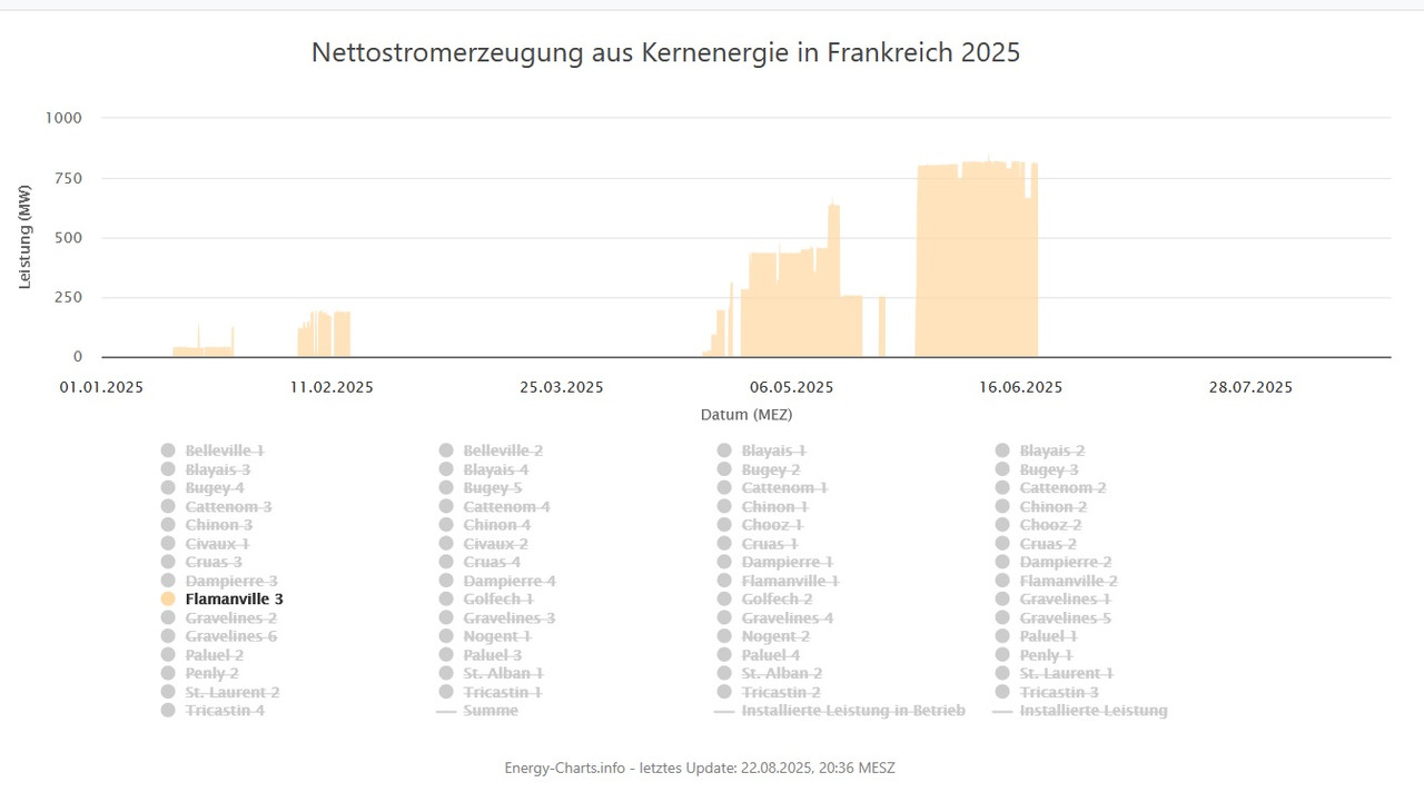 Auch beim neuen AKW-Flamanville-3, das 2024 den Betrieb aufgenommen hat, so kann man das bei EIKE nachlesen.