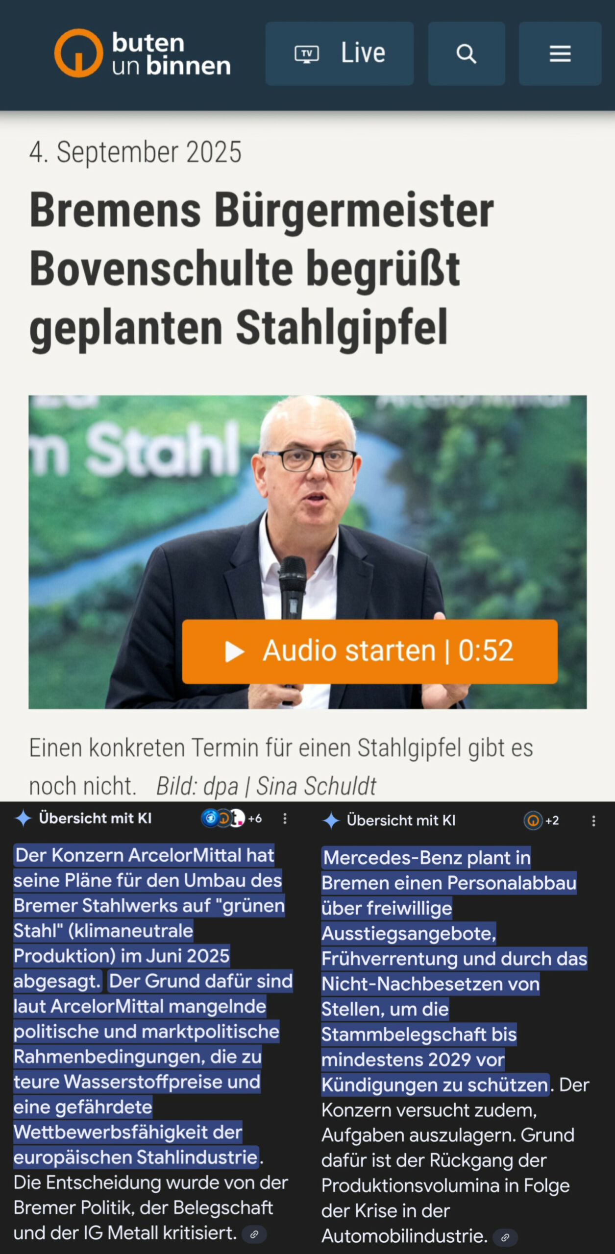 Der Mann ist doch auch nur ein weiterer MINT-Versager der glaubt mittels „Sondervermögen“ die Physik überlisten zu können um wettbewerbsfähigen „grünen Stahl“ in Bremen zu produzieren.