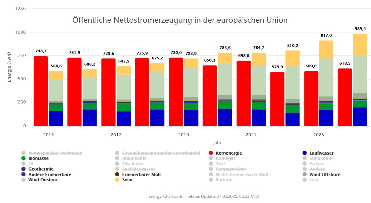 Kernkraft TWh und die TWh der erneuerbaren in der EU?