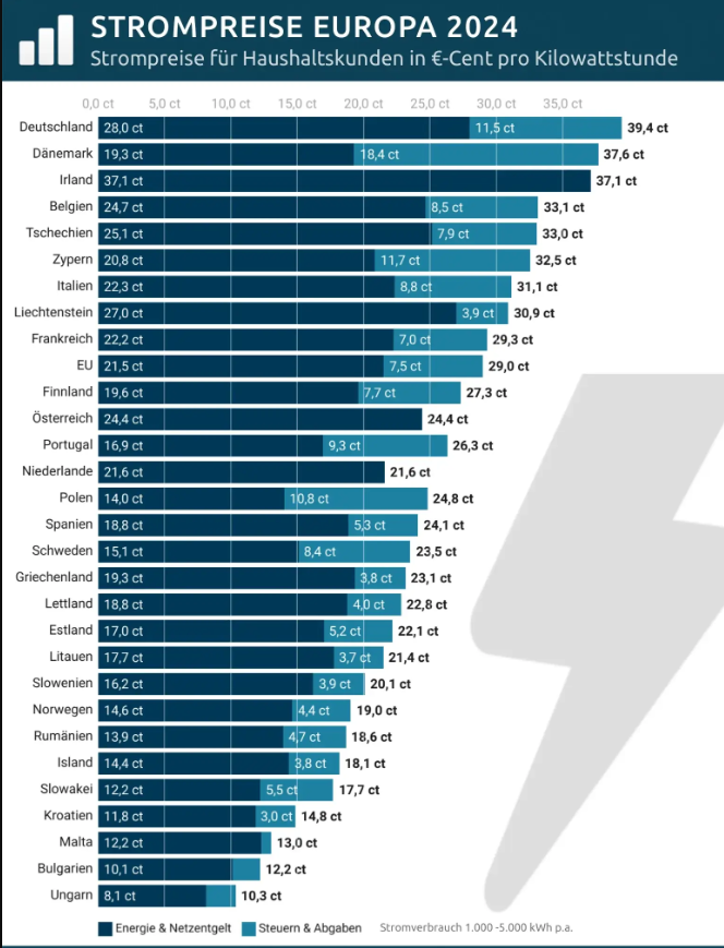 Den höchsten Strompreis gibt es im grünen Deutschland und nicht in Frankreich.
