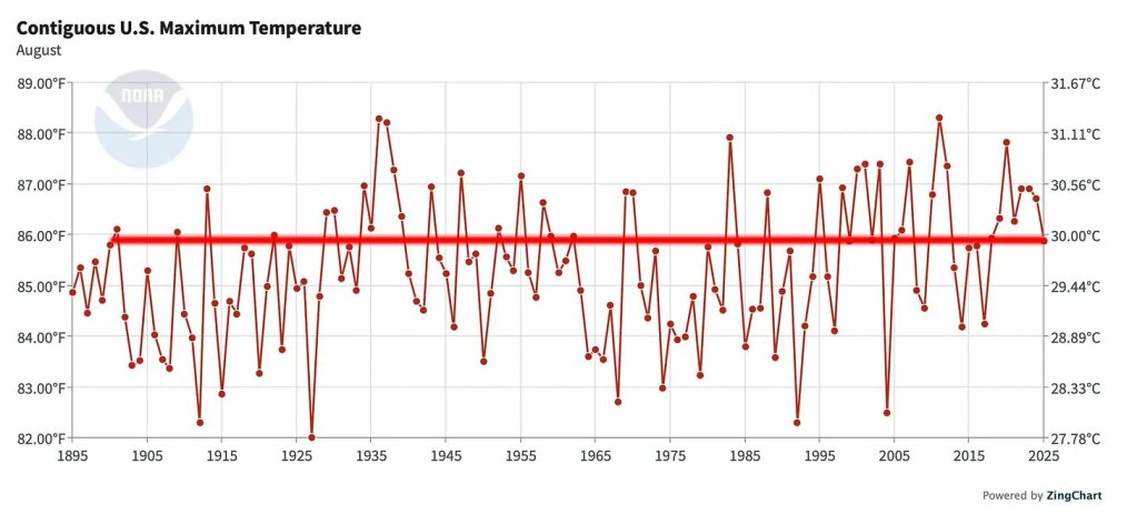 NOAA-Daten: Keine Änderung der August-Höchsttemperaturen seit mindestens 1904