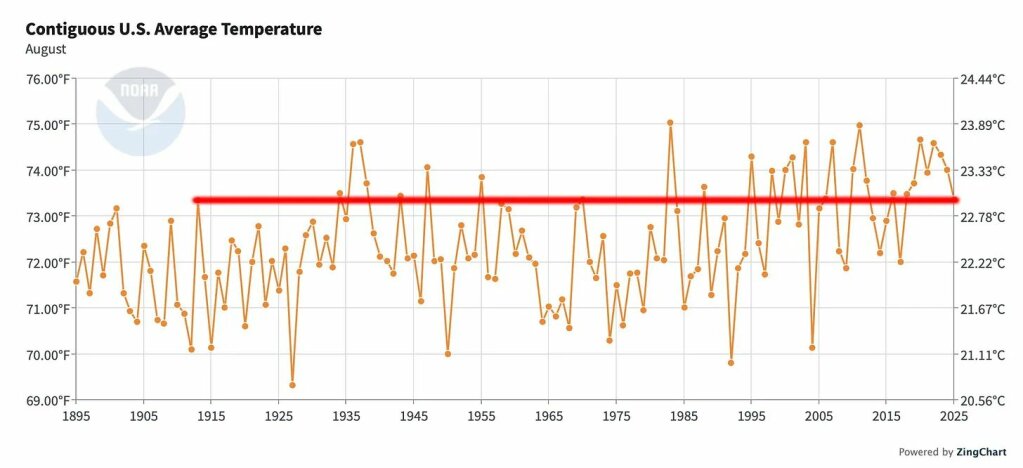 Der August 2025 fällt laut den Daten der NOAA seit August 1904 nicht aus dem Rahmen.