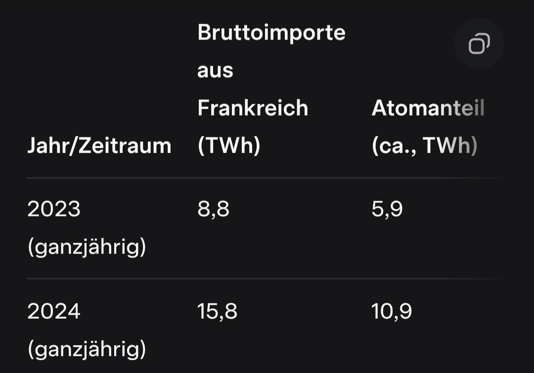 Gab nur eine Leistungssteigerung von lächerlichen +3,2 GW bei den Atomkraftwerken im Jahr 2024 und die bringen ja nur ca. +24 TWh.