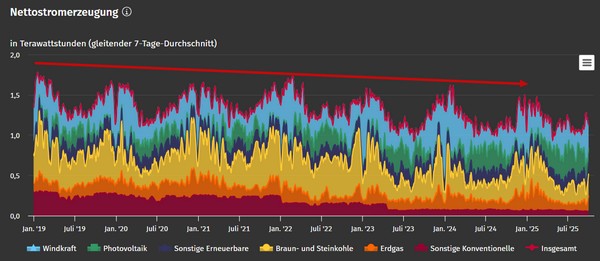 Wird halt immer weniger Strom in Deutschland produziert.