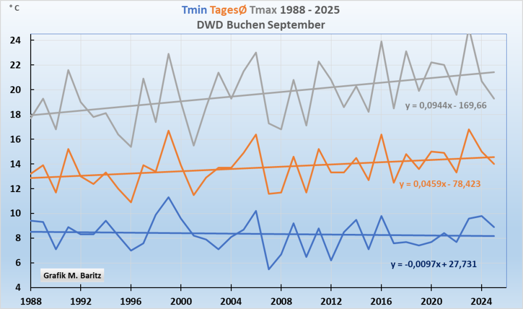 …Ihre 50% Sonnenscheinzunamhe (September 1988 gegenüber 2025) für Buchen sind mal wieder schlicht und einfach falsch es waren keine 10%…