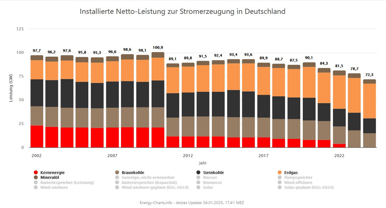 2002 waren das noch 97,7 GW und der Spitze über 100 GW und