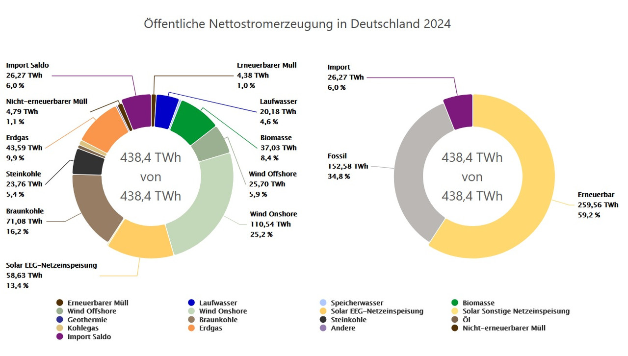 Von den erneuerbaren ca. 59% beim Strom im Jahr 2024.