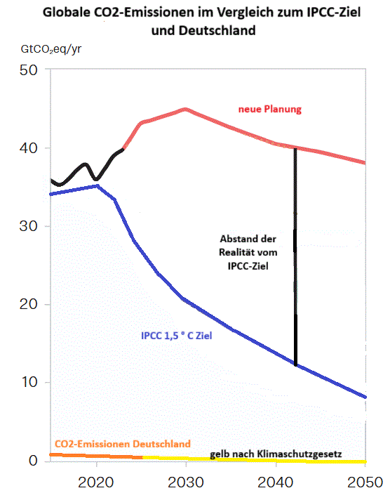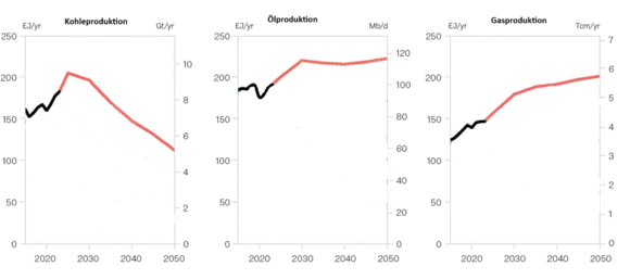 Die Welt wird nach den Planungen der 195 Nationen in 2050 30 % mehr Öl und 60 % mehr Gas als heute verbrauchen und nur 25 % weniger Kohle als 2020 (siehe unten Grafik des Stockholm-Instituts).