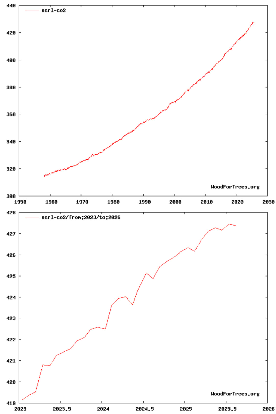 Diese Art von Sprache ist darauf ausgelegt, Schlagzeilen zu machen, nicht Nuancen zu vermitteln. Sie vermischt die Physik des Energiehaushalts – die real, aber stabil ist – mit Wetterextremen, die nach wie vor sehr variabel sind und nur einen geringen Zusammenhang mit den jährlichen CO₂-Veränderungen aufweisen. Es gibt keinen die Vorstellung stützenden physikalischen Prozess, wonach ein Anstieg des CO₂-Gehalts in der Atmosphäre um 3,5 ppm plötzlich irgendetwas „beschleunigt“ hätte. Das ist eine Schlagzeile, keine Wissenschaft. Natürliche Schwankungen sind keine „Beschleunigung“