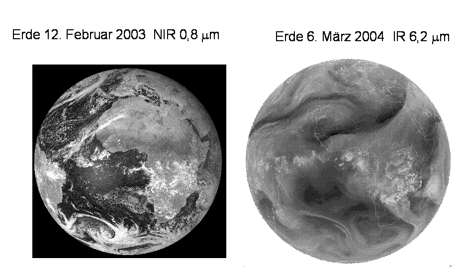 Im Anhang zwei Photos der Erde bei 0,8 Mikrometer und 6,2 Mikrometer.