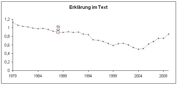 Das Ergebnis ist die Graphik unten, der Einzelwert für 1988 ist als Kringel dargestellt und entspricht Ihren 0,8 °C.