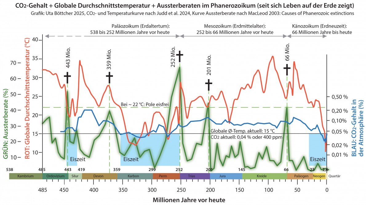 Ganz falsch und völlig unbegründet ist die daraus abgeleitete politische Klimapanikmache der letzten Jahre, die sämtliche Erwärmung seit 1988 ausschließlich auf CO₂ und andere Treibhausgase zurückführt und dieses lebensnotwendige Gas CO₂ sogar als Klimakiller und als schädliches Gift bezeichnet. Es ist eine Politik gegen die Schöpfung auf diesem Planeten. Unser Standpunkt und unsere Motivation als Naturschützer: Die neuzeitliche Klimapanik mit CO₂ als Hauptsünde ist falsch und eine Neuerfindung des Geschäftsmodells Ablasshandel der Kirchen im Mittelalter. Es geht nur ums Geld und nicht um eine Planetenrettung. Wir sind aufgerufen uns zu wehren, das Klima der Erde ist vollkommen normal. Das zeigt uns die letzte Grafik: