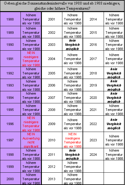 Also just in den späteren Jahren ab 1988 scheint der UHI- Effekt nicht ausgereizt zu sein, wenn man unterschiedliche Steigungsmaße als UHI- Effekt interpretiert.