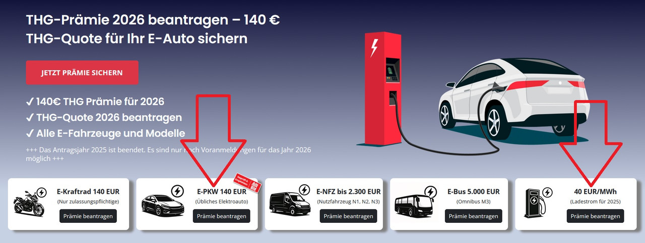 Über die THG-Quote hatte ich 120 € je E-Auto an CO₂-Rückerstattung bekommen, 2025.