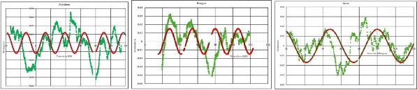 Teil 2 führt eine Kurvenanpassung durch, bei der die Residualwerte (Ist-Werte minus Werte auf einer Best-Fit-Kurve) anhand einer Kurve beurteilt werden, die aus zwei oder drei Sinuskurven unter Verwendung der aus den Spektralanalysen abgeleiteten Spitzenperioden besteht.