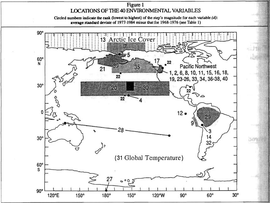 1998 war nicht die erste abrupte Klimaveränderung der Neuzeit. Ein früherer gut dokumentierter Regimewechsel fand 1976–77 statt, als die Pazifische Dekaden-Oszillation (PDO) in einen neuen Zustand überging. Die PDO wechselte von negativ zu positiv, das Aleuten-Tief vertiefte sich und die Meerestemperaturen im Nordpazifik stiegen abrupt. Im Gegensatz zur Veränderung von 1998, welche die Zirkulation und die Extreme veränderte, veränderte die Veränderung von 1976 tatsächlich die Basislinie. Der Pazifik nahm einen semi-permanenten El-Niño-ähnlichen Hintergrund an, mit wärmeren tropischen Meerestemperaturen, schwächeren Passatwinden und reduziertem Auftrieb im östlichen Pazifik. Da der tropische Pazifik einen so großen Anteil am globalen Wärmegehalt der Ozeane hat, führte diese Veränderung zu einem realen, messbaren Anstieg der globalen Durchschnittstemperatur.