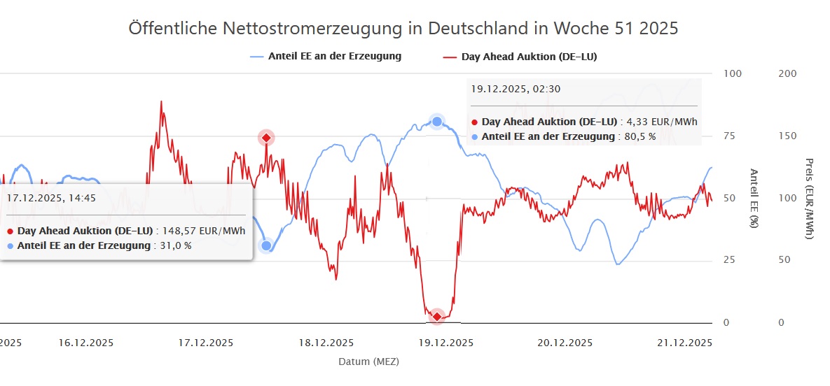 - Regenerative Erzeugung im Wochenüberblick 1.12.2025 bis 7.12.2025