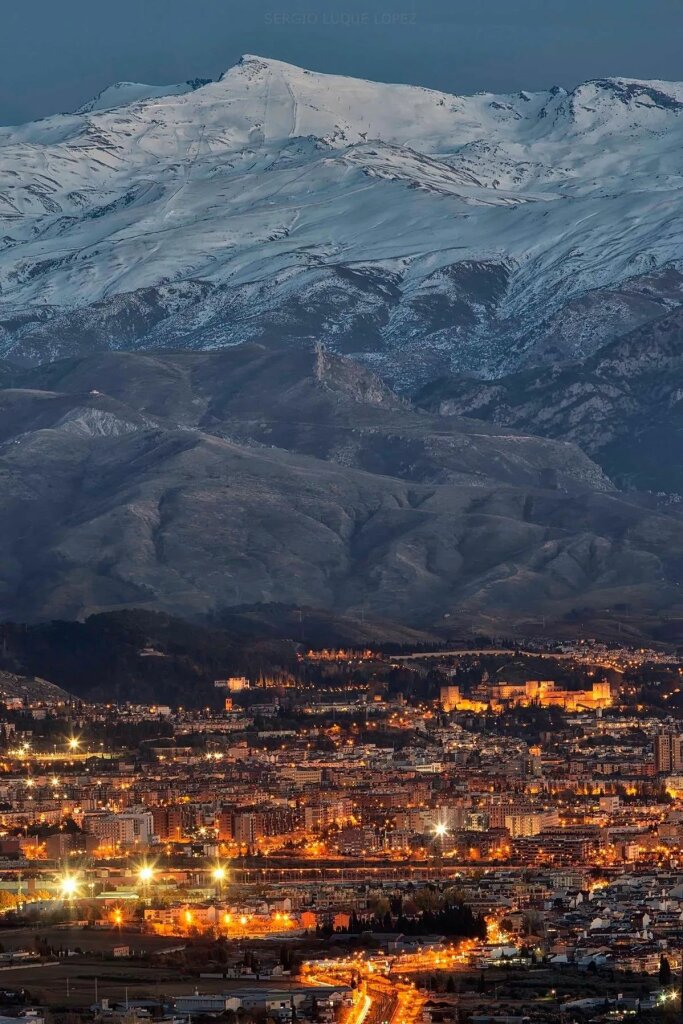 Weiter westlich in Spanien fallen ebenfalls ergiebige Schneemengen in den Bergen. Die Stadt Granada liegt unterhalb der schneebedeckten Sierra Nevada: