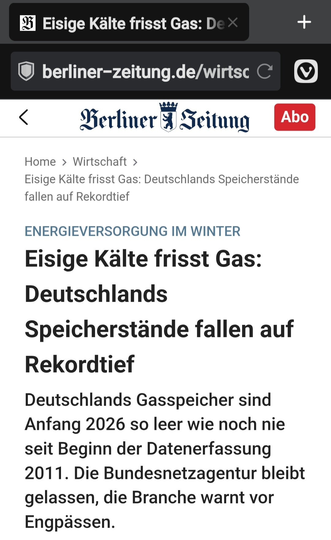 PS Neuer Negativrekord beim Gas.