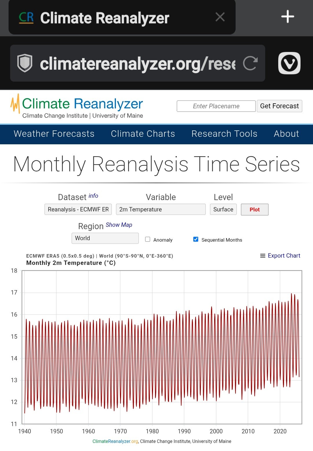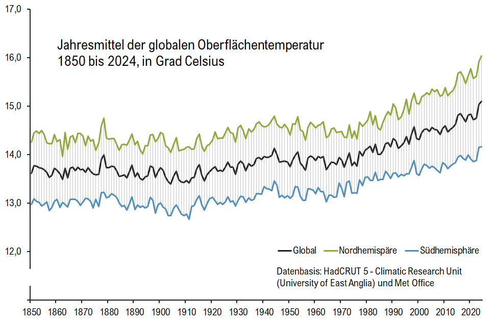 Ich bin zwar nicht dieser Leon, aber die Frage ist eindeutig zu beantworten: Nein. Die globale Oberflächentemperatur (Jahresmittel) kratzt aktuell an der 15 Grad-Grenze herum. In der nördlichen Hemisphäre hat sie 2024 16°C angekratzt, in der Südhemisphäre dümpelt sie bei kapp über 14°C.