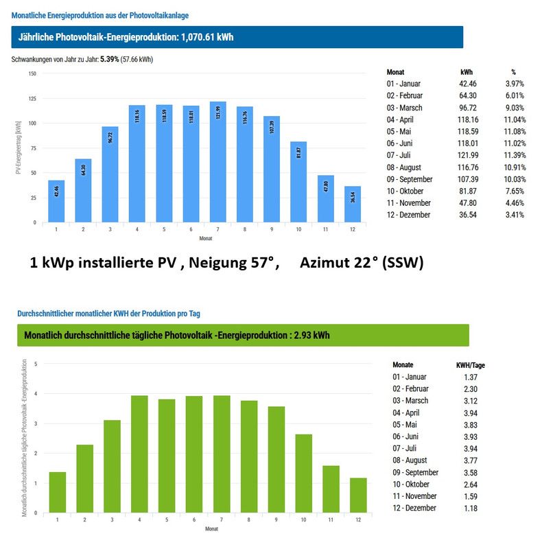 1070 kWh / 5,5 m² = 194,5 kWh je m² Solarmodulfläche am Dach.
