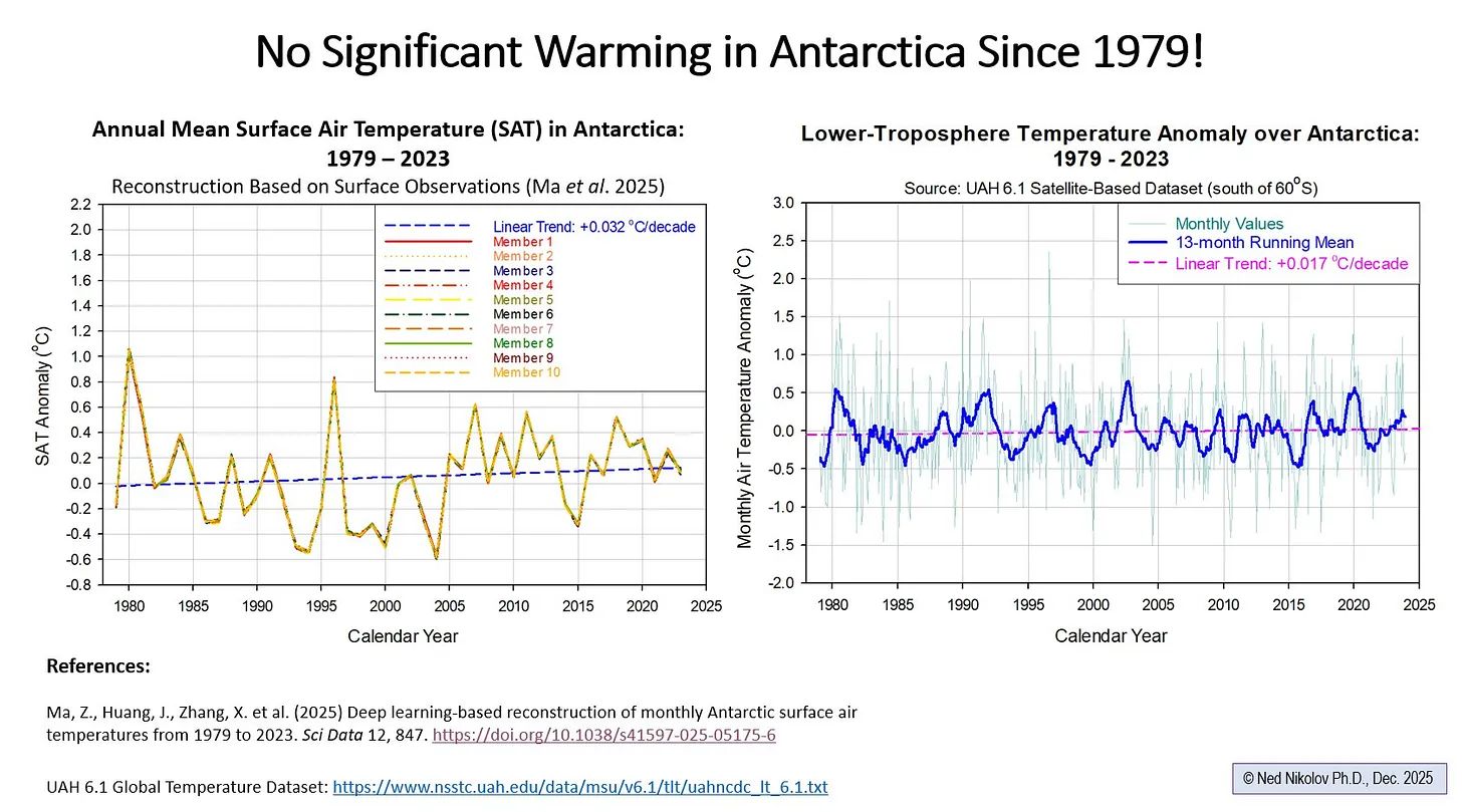 Eine Analyse von Dr. Ned Nikolov zeigt, dass die Antarktis in der modernen Satellitenära keine statistisch signifikante Erwärmung erfahren hat.
