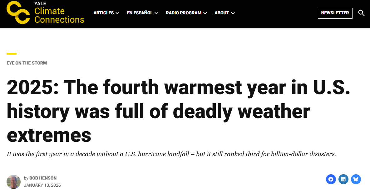 Und im Jahr 2025, dem Jahr nach den höchsten CO₂-Konzentrationen und einigen der höchsten globalen Temperaturen seit Beginn der Aufzeichnungen, ist die Gesamtzahl der Katastrophen niedriger als jemals zuvor im letzten Vierteljahrhundert.