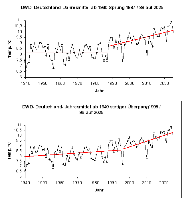 DWD- Deutschland- Jahresmittel ab 1940 Sprung 1987 / 88 auf 2025