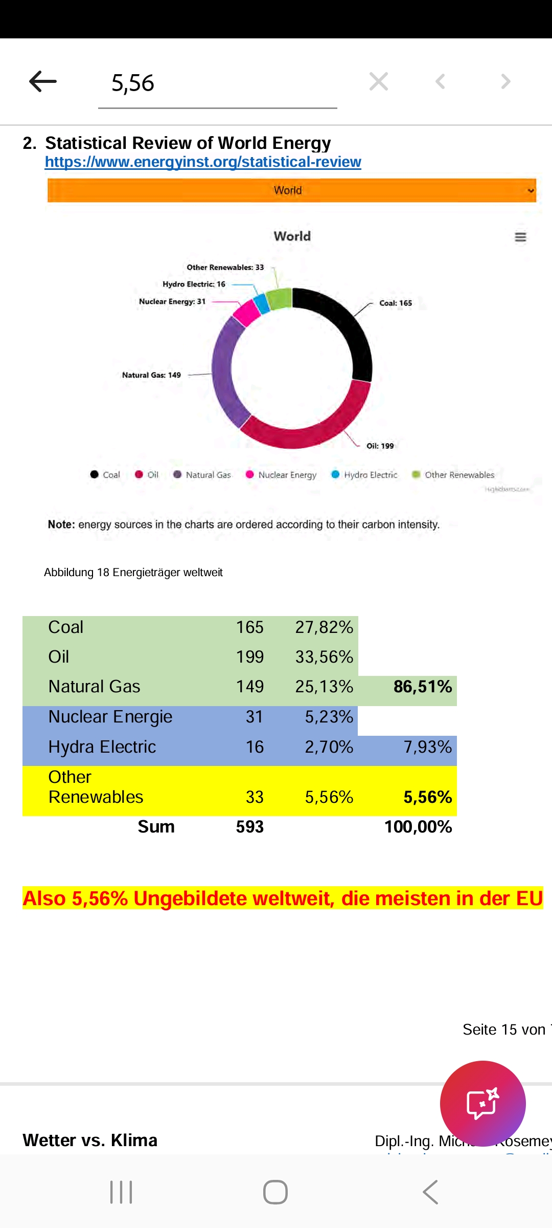 Diese Richtlinien sind sehr allgemein und können nicht jede mögliche Situation abdecken. Nehmen Sie deshalb bitte nicht an, dass das EIKE Management mit Ihnen übereinstimmt oder sonst Ihre Anmerkungen gutheißt. Wir behalten uns jederzeit das Recht vor, Anmerkungen zu filtern oder zu löschen oder zu bestreiten und dies ganz allein nach unserem Gutdünken. Wenn Sie finden, dass Ihre Anmerkung unpassend gefiltert wurde, schicken Sie uns bitte eine Mail über "Über Uns->Kontakt"Statistical Review of World Energy https://www.energyinst.org/statistical-review